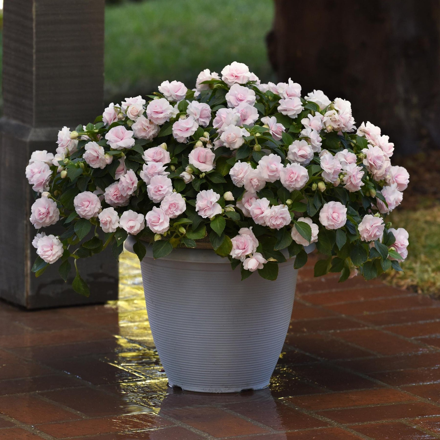 Argyranthemum ‘Grandaisy Red Orange’, also known as Marguerite Daisy, will reward you with an abundance of cheerful, oversized blooms. The flowers begin as a rich, bold red and gradually shift in tone as they age, creating a striking mix of red hues within a single plant — as seen in the photo. Each bloom features a distinctive yellow ring around a darker central eye, adding further contrast and visual appeal.