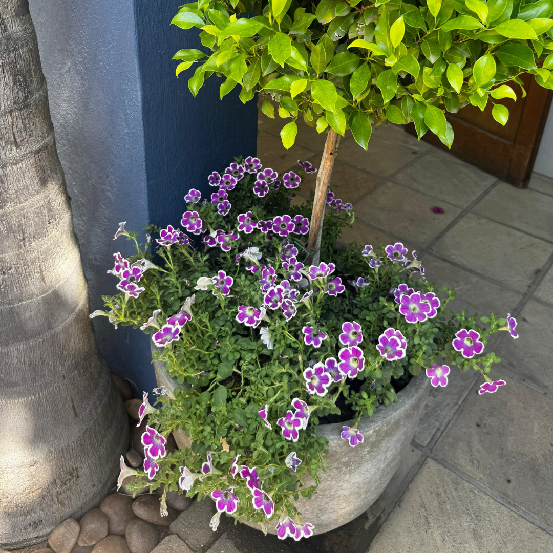 Argyranthemum ‘Grandaisy Red Orange’, also known as Marguerite Daisy, will reward you with an abundance of cheerful, oversized blooms. The flowers begin as a rich, bold red and gradually shift in tone as they age, creating a striking mix of red hues within a single plant — as seen in the photo. Each bloom features a distinctive yellow ring around a darker central eye, adding further contrast and visual appeal.